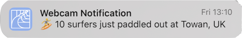 Throughout the day our machine learning model will detect if any surfers have paddled out and notify your phone.